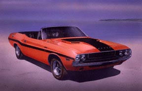 Bill's passion for machines, speed and power has fueled a lifelong interest in American Musclecars. His attention to detail and use of the airbrush has attracted the eye of many automotive art directors. His award winning art has appeared on covers, as pull-out posters and inside pages of over 25 automobile publications. In addition to working as a freelance illustrator and graphic designer, he has self published numerous limited edition art prints that feature American Musclecars from the sixties and seventies. He lives with his wife Sandy, two sons, Nicholas and Tyler and three x-racing greyhounds (Ethyl, Diesel & Petro) in Minot, North Dakota. He teaches Graphic Design and Illustration in the Art Department at Minot State University. A sample of his artwork can be seen below.